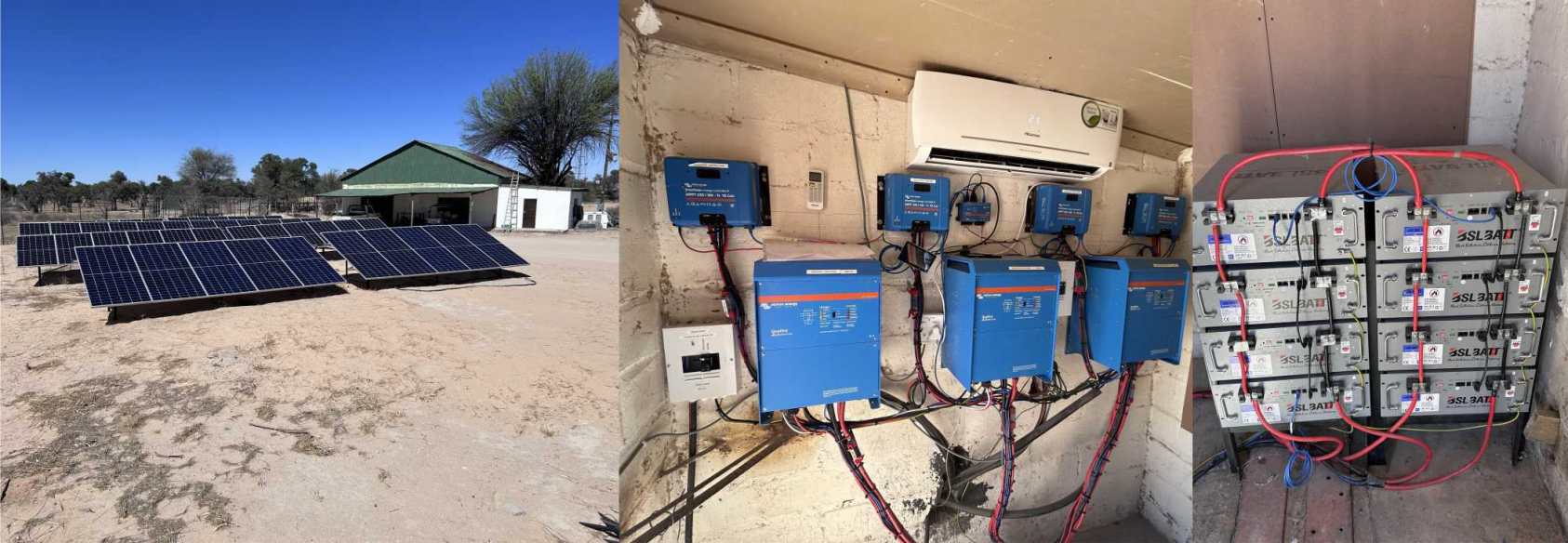 with 3 x 8,0 kWatt Victron Quattro inverter/chargers and storage of 8 x 6,4 kWatt hour BSL lithium ion phosphate batteries.
